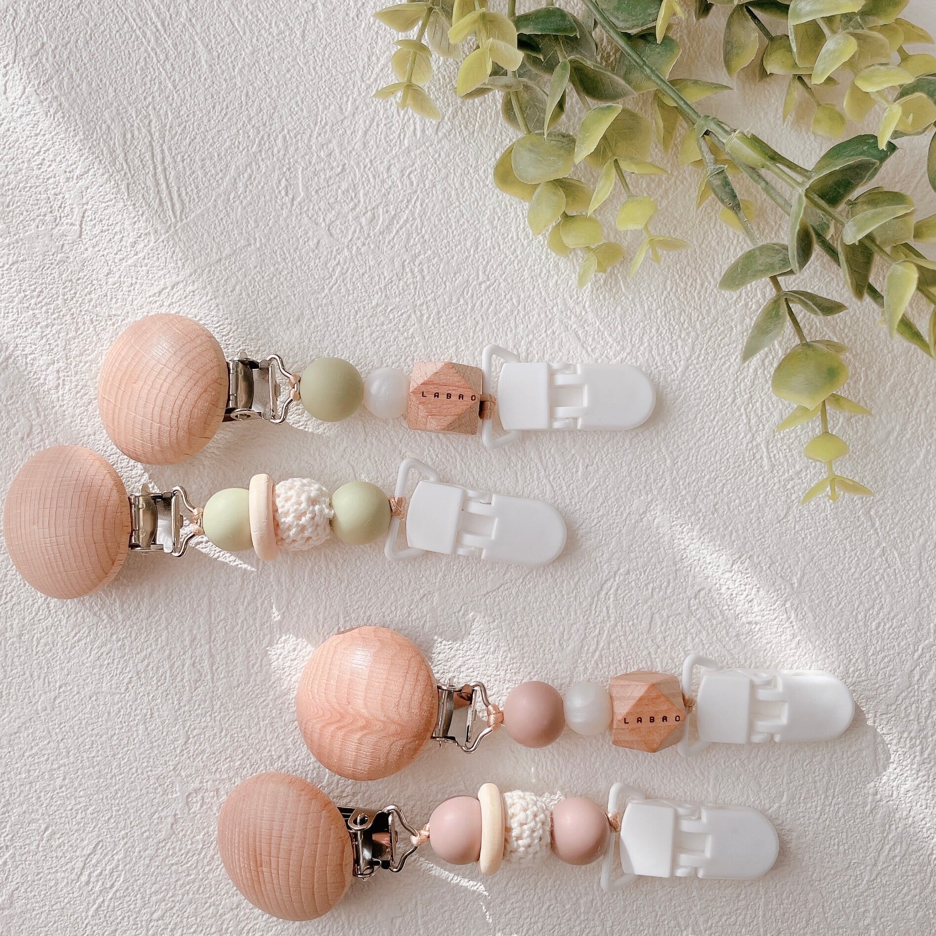 ビーズ商品は赤ちゃんが口に入れても安心な素材でお作りしています。