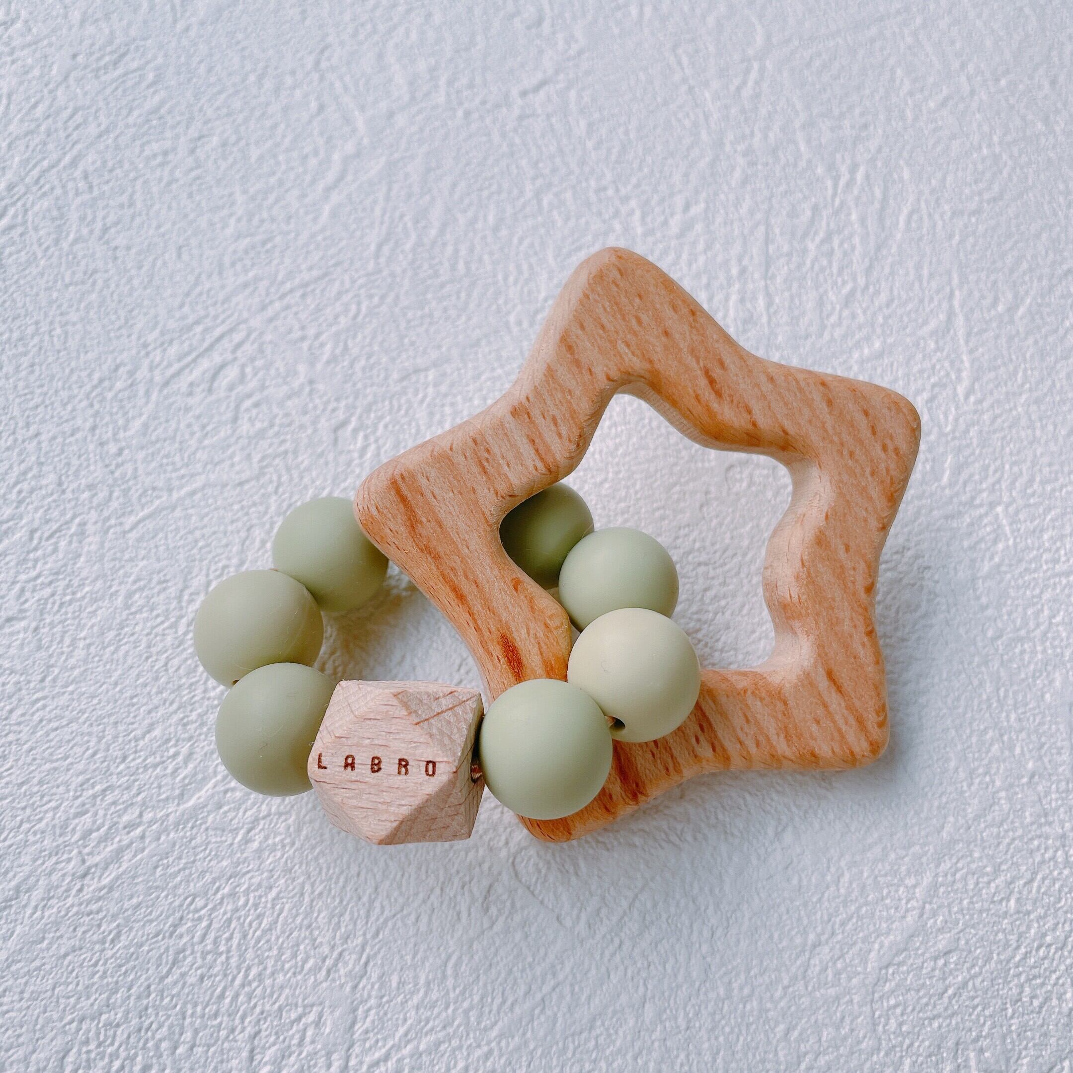 歯固め シンプル スター おもちゃ 赤ちゃん 0歳 日本製 出産祝い ベビー シリコン 木製 ビーズ ファーストトイ