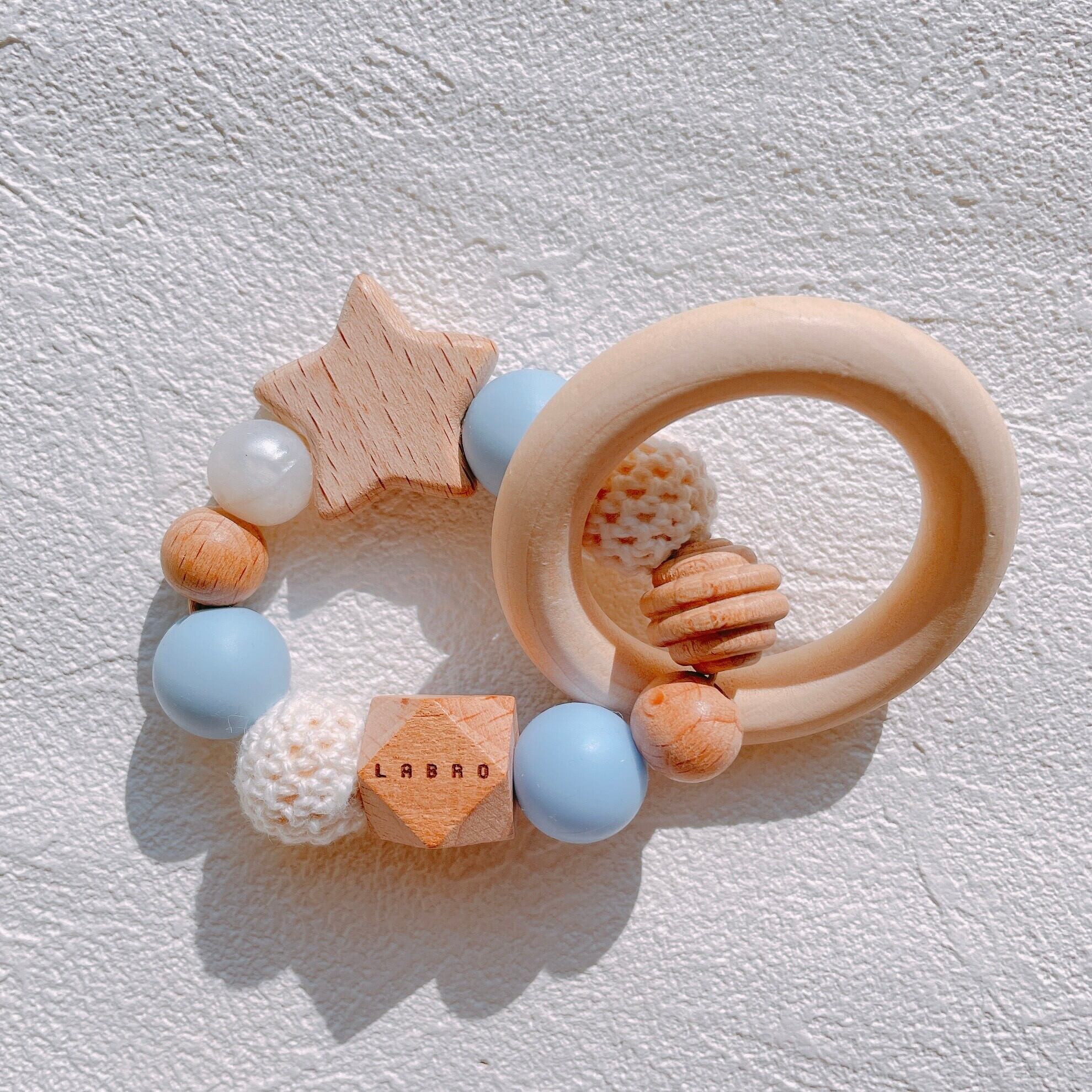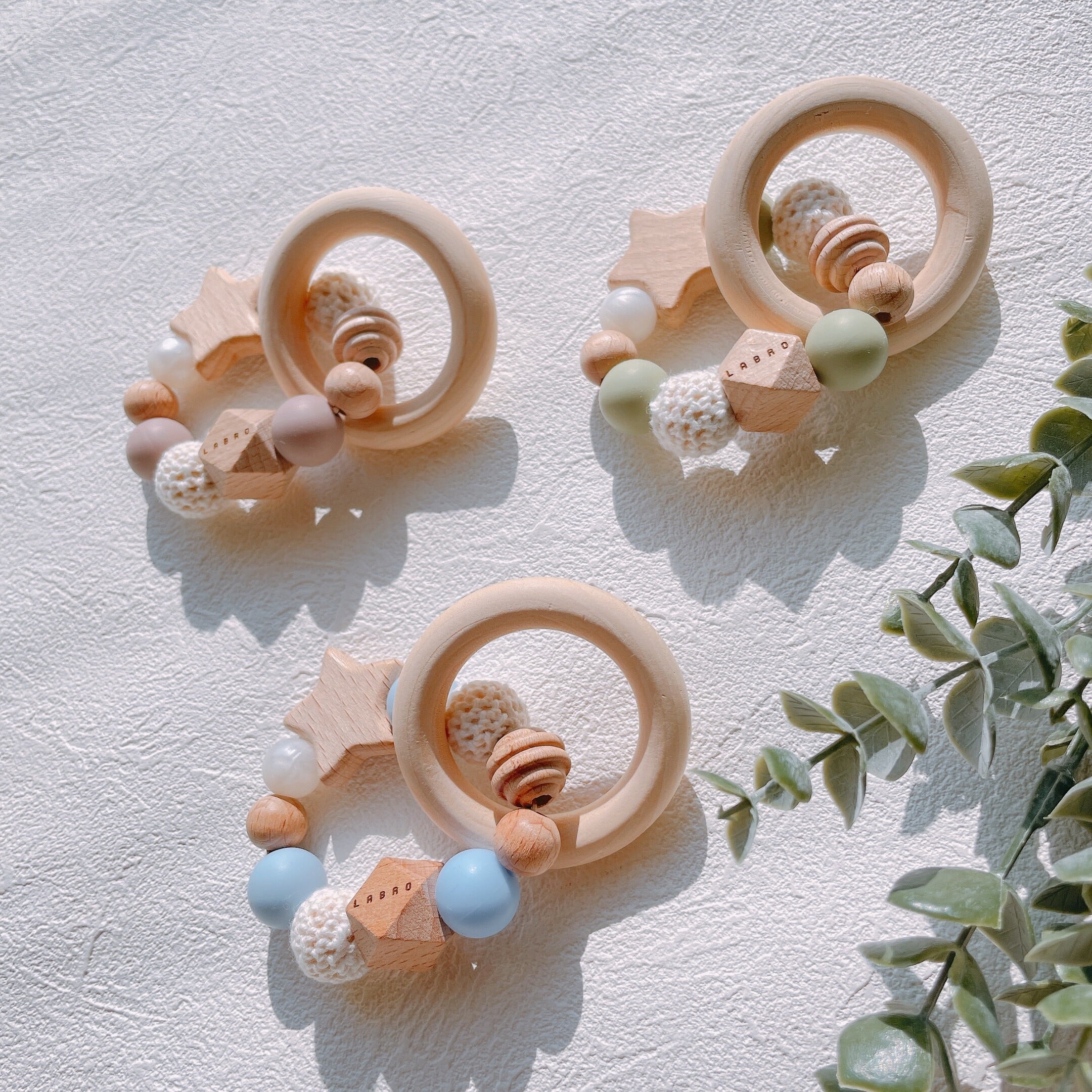 歯固め 星柄 おもちゃ 赤ちゃん 0歳 日本製 出産祝い ベビー シリコン 木製 ビーズ ファーストトイ